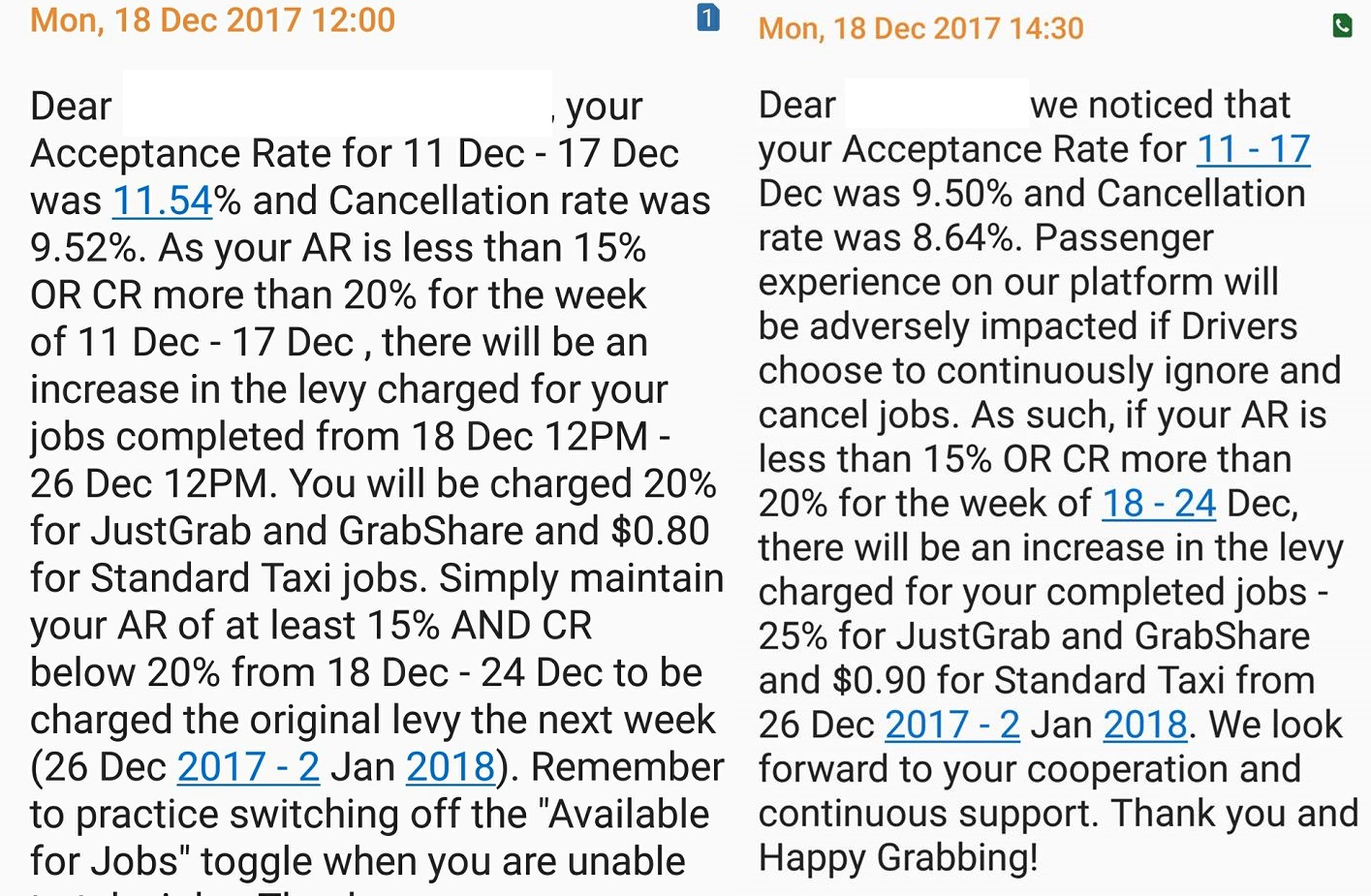 When drivers ignored such jobs offered by Grab, they would be penalised through the Acceptance Rate (AR) metric and if they were to fall below a 15% AR, they would be penalised with a heavier 20% levy on the fares they collect. Drivers claimed they had feedback such unfair practices to Grab’s customer service but were paid lip service. Nothing has changed despite the numerous feedback.