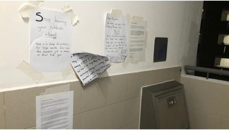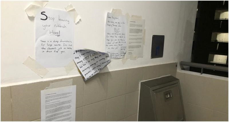 But instead of speaking to one another in person, they decided to exchange strongly worded messages to each other with written notes pasted on the walls of the common rubbish chute area.