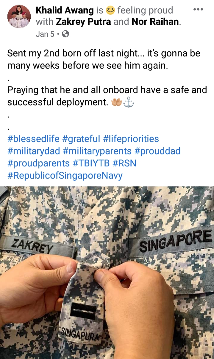 Today, LTA Zakrey is an officer in the Republic of Singapore Navy.