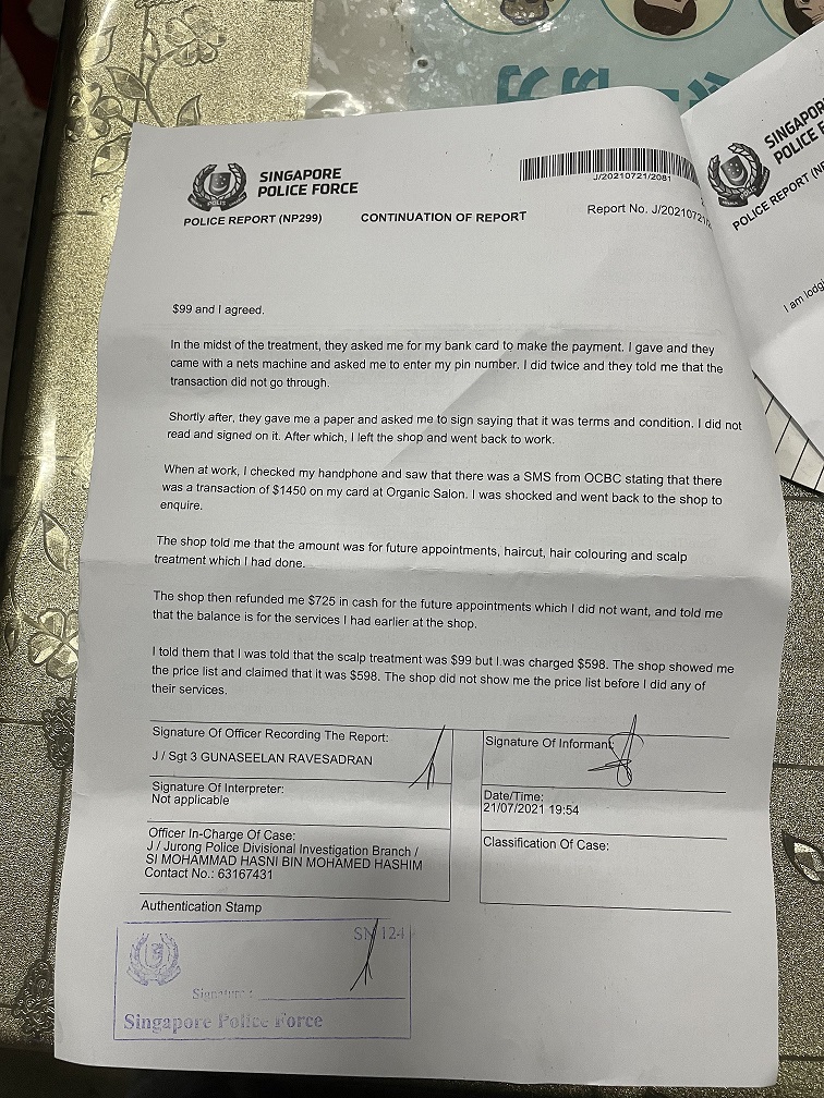 In fact, this was not the first time that Organic Salon had cheated its customers this way. In Sep 2020, a lady was charged $1999 without her knowledge for what was supposed to be a $3 haircut and a $29 hair treatment.