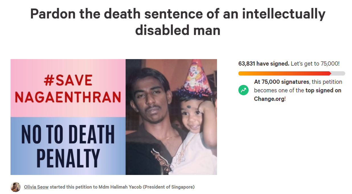 The rather misleading petition titled “Pardon the death sentence of an intellectually disabled man” has claimed, amongst other things, that the Singapore Government was trying to hang Nagaenthran, who was a intellectually disabled man with an IQ of just 69.