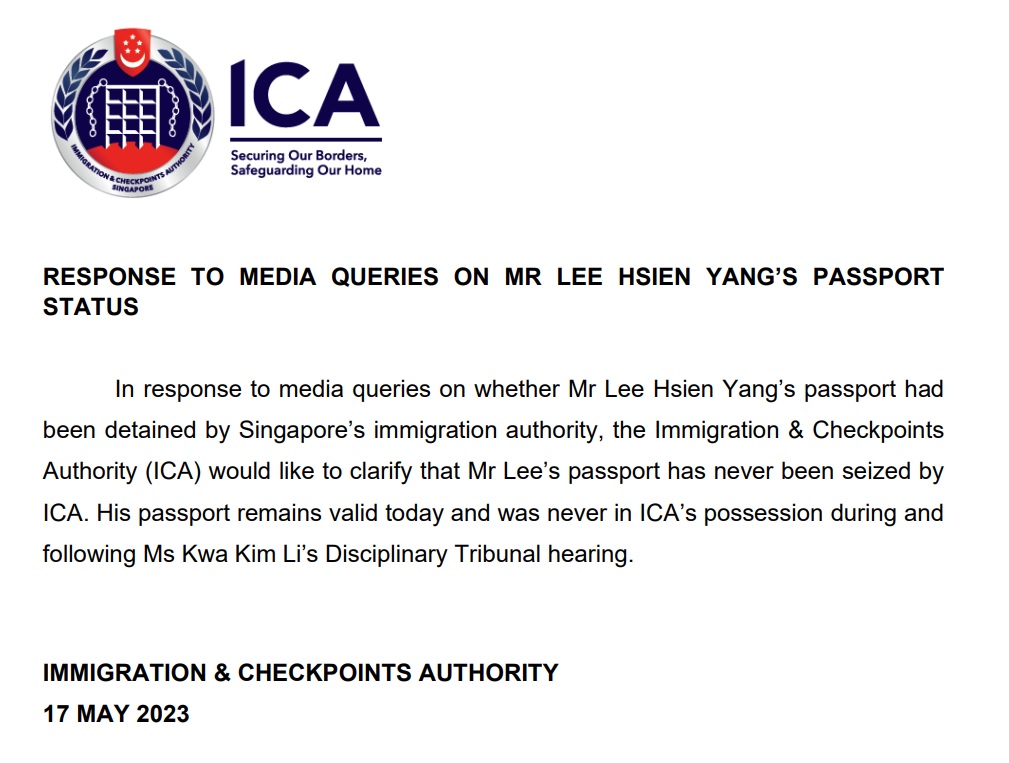Another reason why immigration authorities will hold on to one’s passport is when he/she is migrating or renouncing his/her citizenship, but from what ICA said, Lee Hsien Yang’s passport remains valid to date.