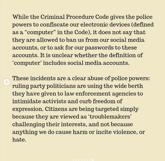 “This is a clear violation of our constitutional right as Singapore citizens to free expression.”